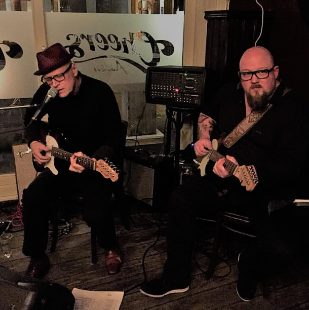 Gezellige sfeer in Pub Cheers. CarolienVegter van Cheers, Elton Joseph van EJMP en Jan Postma van de Bluesstichting Assen, hartelijk dank voor de uitnodiging. Carolien bedankt voor de gastvrijheid en de lekkere hapjes.